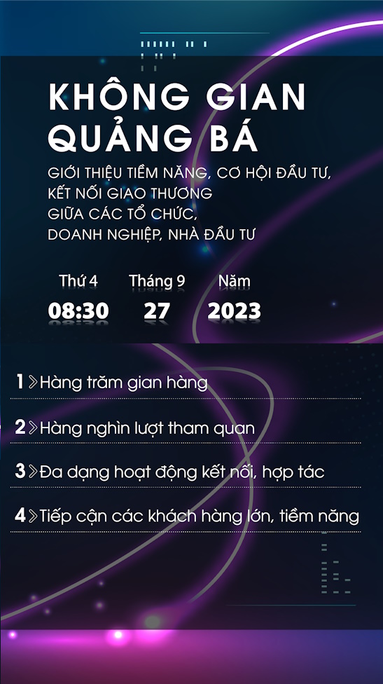 Không gian quảng bá, giới thiệu tiềm năng, cơ hội đầu tư, kết nối giao thương giữa các tổ chức, DN, nhà đầu tư